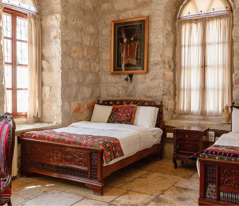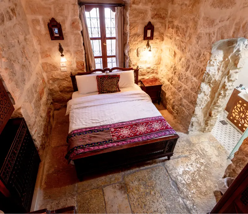 The Jerusalem Hotel offers a range of accommodation options, with each of its 14 rooms exuding a unique character and charm. Timeless Middle Eastern-inspired décor and antique furnishings contribute to the hotel’s distinctive ambiance.